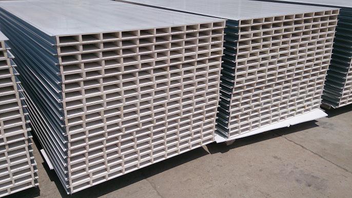 硫氧鎂夾芯板充分發(fā)揮了硫氧鎂復(fù)合材料的獨(dú)特性能,在防火,防潮,防脫膠,高強(qiáng)度,保溫,隔熱,吸音等方面有著顯著地優(yōu)點(diǎn)及功效。 生產(chǎn)工...